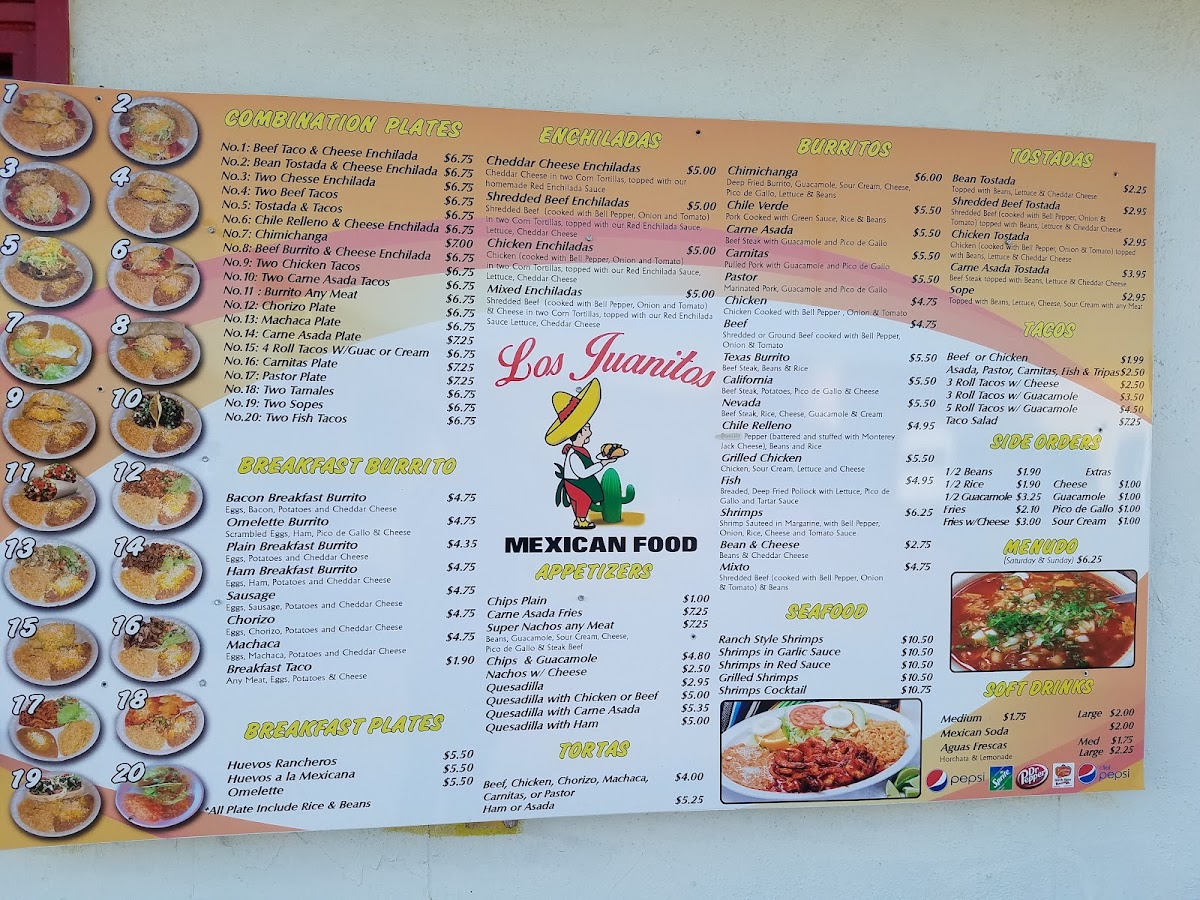 Los Juanitos offers a straightforward, comforting menu that captures the essence of traditional Mexican flavors served in a casual, friendly setting. The menu features hearty plates and satisfying combinations, ideal for lunch or dinner when you’re looking for filling, flavorful dishes that feel like home.